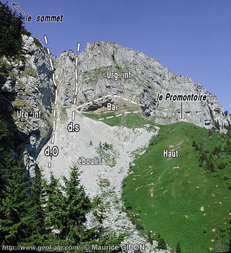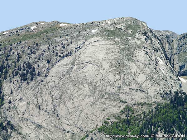 Cette disposition a un effet particulièrement spectaculaire à l'aplomb du sommet, où l'Urgonien est dénudé sur