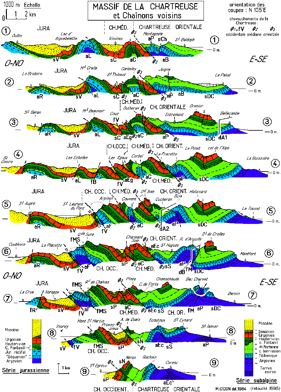 ![]() Coupe montrant le cadre structural du col de la Charmette extrait de la planche de coupes |