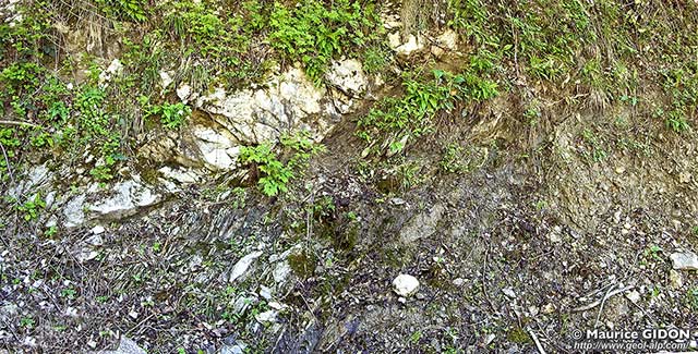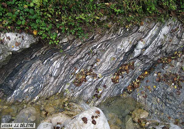 Ce contact est d'ailleurs agrémenté de figures micro-tectoniques significatives (cliché ci-après)