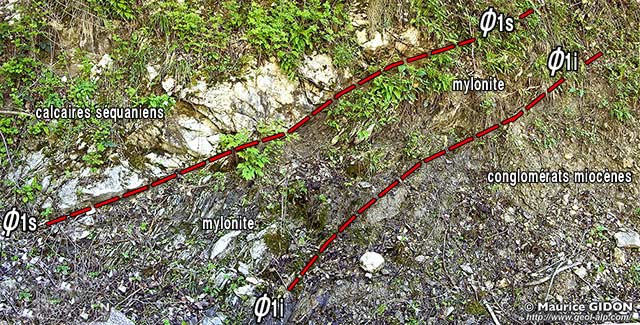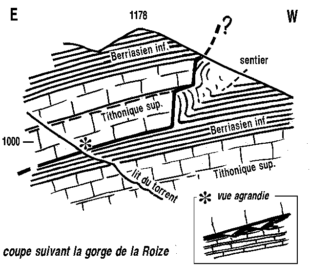 de l'Ane, où le pendage de la surface de cassure semble également très redressé. |