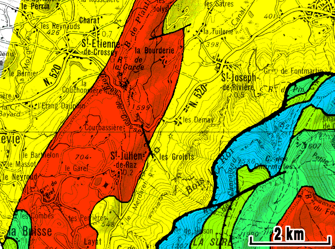 cartes géologiques au 1/50.000° à consulter : feuilles Voiron et Montmélian