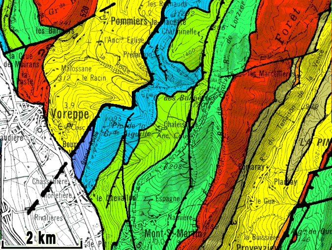 carte géologique au 1/50.000° à consulter : feuille Grenoble