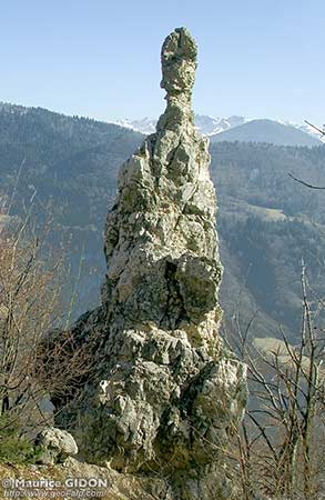 Ce petit monolithe, haut de 5 à 6 mètres, se détache en marge aval du chemin du Petit Sappey, dans la masse centrale de l'éboulement du Petit Sappey. Il montre la nature des clochetons qui sortent des bois dans ce versant : on y distingue des blocs, de taille métrique, noyés dans la brèche de pente à éléments plus fins.