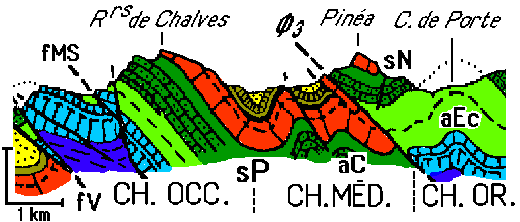 Coupes transversales aux crêts de Lorzier et de Chalves
