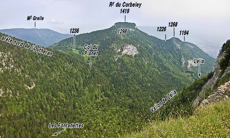 Le col du Planet, qui sépare la montagne du Corbeley de celle de l'Outheran, se situe sur le tracé de cette faille de La Combe, mais le vallon des prairies du Planet ne saurait avoir été déterminé par cette cassure, puisqu'il est orthogonal à son tracé. Ce vallon traverse en pente douce les couches supérieures des calcaires du Fontanil de la voûte de l'anticlinal médian (remontées par la faille de La Combe), puis il se poursuit par le ravin de la Gorgeat, qui donne une coupe du flanc ouest de l'anticlinal : on y voit sans ambiguité qu'il n'y a aucune discontinuité tectonique séparant ses deux rives et que son origine n'est donc pas structurale.