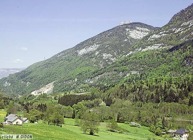 De fait il semble bien que la voûte de ce pli médian de la Chartreuse se prolonge sous les molasses et le quaternaire et que c'est elle qui en resurgit, plus au nord, à Voglans. Là, en effet, le tracé de l'autoroute A41 se fraye un passage en entaille dans une carapace urgonienne dont les couches, presque horizontales, correspondent clairement à une voûte anticlinale. On peut même présumer que c'est le même pli qui resurgit de nouveau, au nord d'Aix, pour former la montagne du Corsuet et de la Chambotte. Si ce pli ne se manifeste plus dans le relief plus au nord c'est que cette formation, outre qu'elle affleure peu aux abords de son tracé, est constituée de molasses homogènes et plutôt tendres qui ne présentent pas de différenciations lithologiques résistantes susceptibles de traduire dans le relief le dessin du pli. Elle n'est d'autre part pas discordante sur le pli puisque l'on constate dans la vallée de Couz, son ploiement en synclinal entre les chaînons de la Chartreuse et du Mont du Chat. |