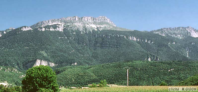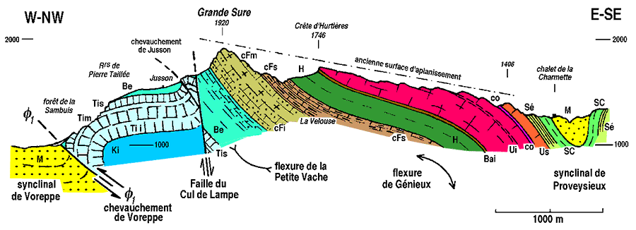 calcaires du Fontanil jusqu'à la base de la barre calcaire tithonique (le Jurassique supérieur marneux n'y vient pas au jour). Cette dernière barre est d'ailleurs particulièrement épaisse (de l'ordre de 500 m, c'est-à-dire environ le double de ce qu'elle atteint en Chartreuse orientale).