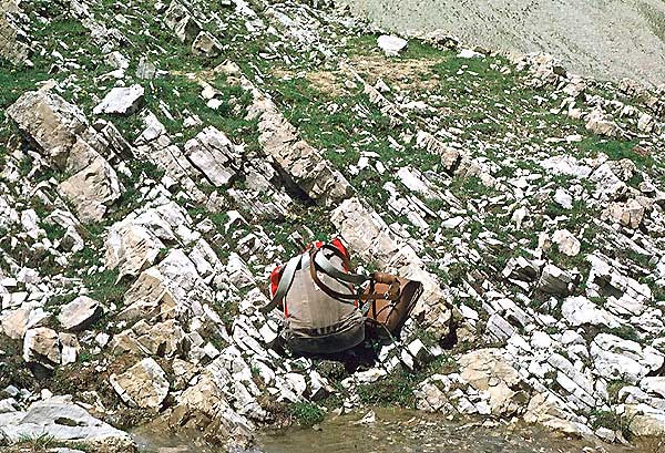 | Le passage du Malpasset sous le sommet de l'Obiou | Un affleurement dans le vallon de Charnier |