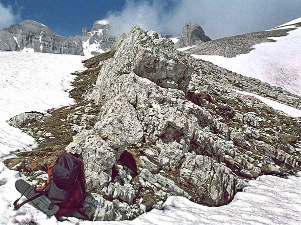Kink-band décamétrique, dans les abrupts orientaux du Pic de Bure, vu du nord depuis la Combe Ratin.