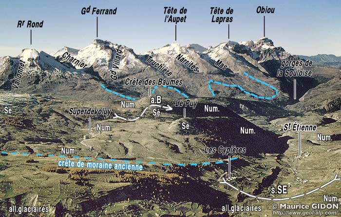 une puissante langue glaciaire qui descendait du sommet par le