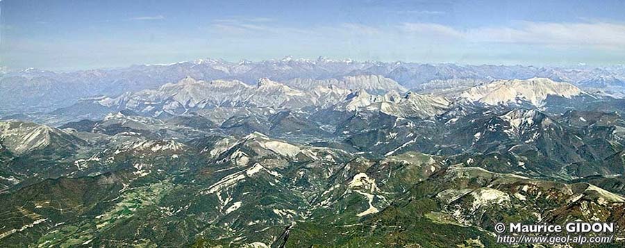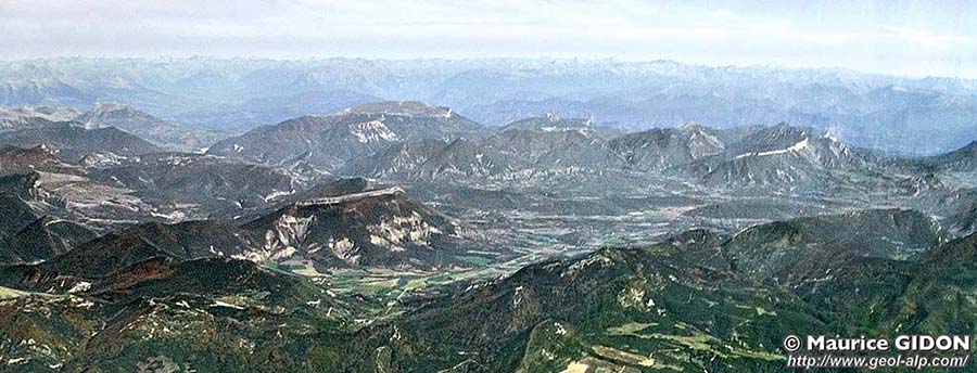 Le Dévoluy et le Bochaine septentrional, vus du sud-ouest, depuis l'aplomb de Luc-en-Diois