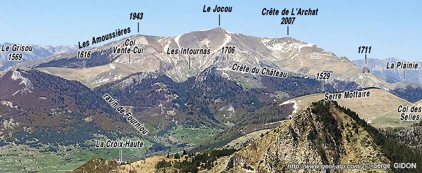 On trouvera des vues du prolongement septentrional du chaînon du Jocou à la page "Lalley" (versant nord-est) et à la page "Jocou ouest" (versant nord-ouest).