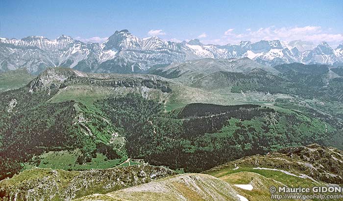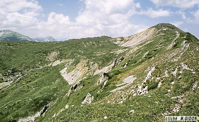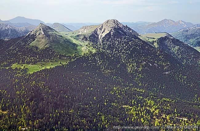 À l'est du col de la Croix Haute, l'extrémité septentrionale des montagnes de la rive orientale du Bochaine sont entaillées par le rebord méridional de la dépression des Terres Noires du Trièves méridional. Ce dernier, dans l'ensemble orienté E-W, est assez fortement incisé par des vallons secondaires, au dessus desquels se détachent les modestes reliefs du Sommet de l'Aup et du Rognon.