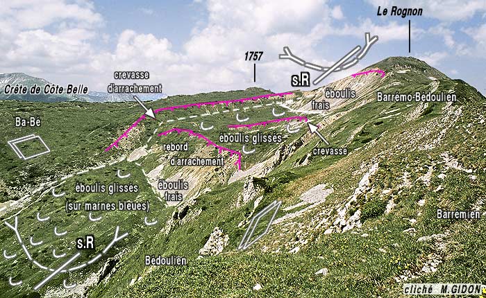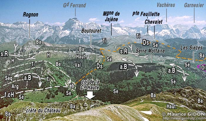 Ces reliefs de la partie tout-à-fait septentrionale du Bochaine se distinguent de ceux des pentes plus méridionales de la rive orientale de la vallée par l'absence du Sénonien. Ce dernier y a été complètement décapé par l'érosion quaternaire, sans doute parce qu'il y a été particulièrement surélevé : en effet on se trouve ici dans la partie la plus bombée du prolongement méridional de la large voûte anticlinale du "dôme de la Mure" (voir la page "Matheysine").