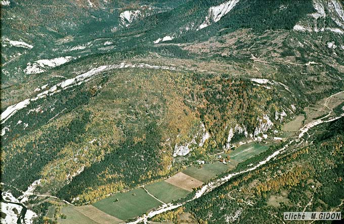 Comparer avec la vue de la dépression de La Faurie prise dans l'axe des plis post-sénoniens.
