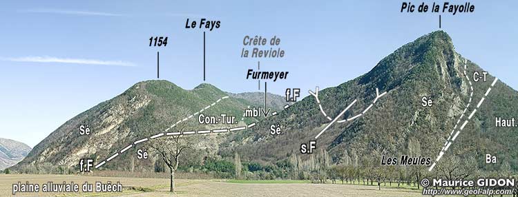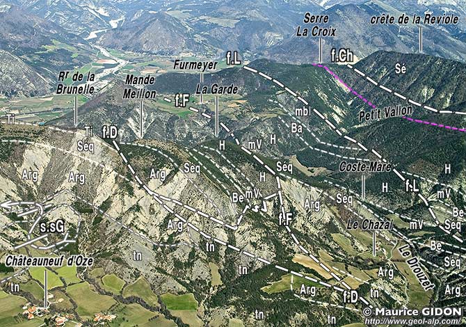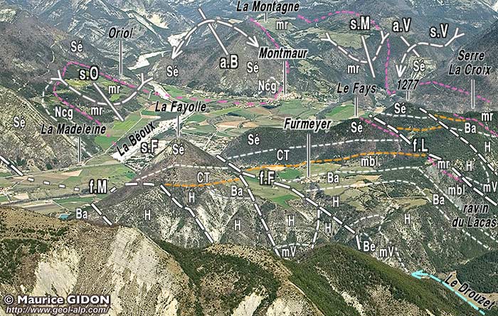 À l'ouest de Furmeyer c'est également le Néocomien (Barrémien à Berriasien) du flanc nord de l'anticlinal E-W de Châteauneuf d'Oze qui constitue les pentes des rives gauches du Buëch et du Drouzet, aux abords et en aval de leur confluent.