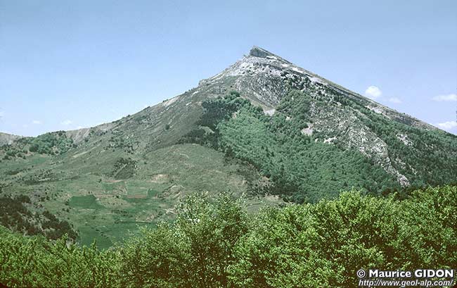 Le crêt de la barre tithonique y culmine en outre particulièrement haut pour ce secteur, d'autant que plus au sud (Crête des Selles) le prolongement de cette barre ,indentée par des entailles de ravins, ne forme plus qu'un alignement discontinu de pitons rocheux moins élevés et sans point culminant bien détaché. Ce surcroît d'altitude est sans doute du à ce que, dans le versant sud-ouest de la montagne, la barre tithonique est redoublée (sur plus de 1 km de long) par le chevauchement d'Aujour.