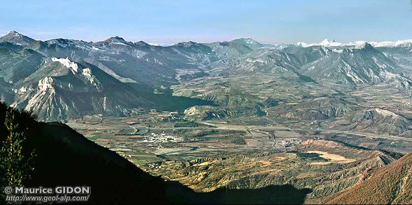 À Barcillonnette même ce chevauchement se transforme, vers le nord, en une faille coulissante dextre orientée NNE-SSW qui parcourt en biais le ravin de Rousserand (c'est là un raccord en "bord de tiroir", d'un genre assez courant). Il ne fait guère de doute que cette cassure se raccorde, au delà, à travers les Terres Noires du fond de la vallée, à la grande faille de Châtillon-le-Désert qui franchit la crête de rive gauche au col de la Baume et que l'on suit de façon continue, vers le nord jusqu'au delà de la vallée du Petit Buëch (elle finit par se connecter, au nord de Montmaur, au chevauchement médian du Dévoluy).