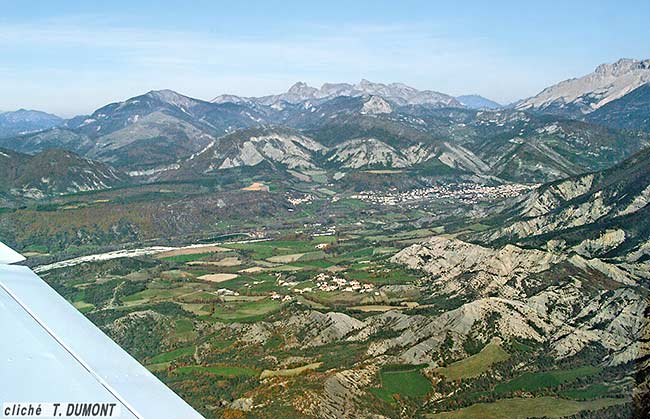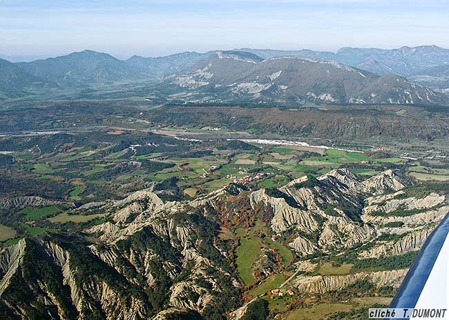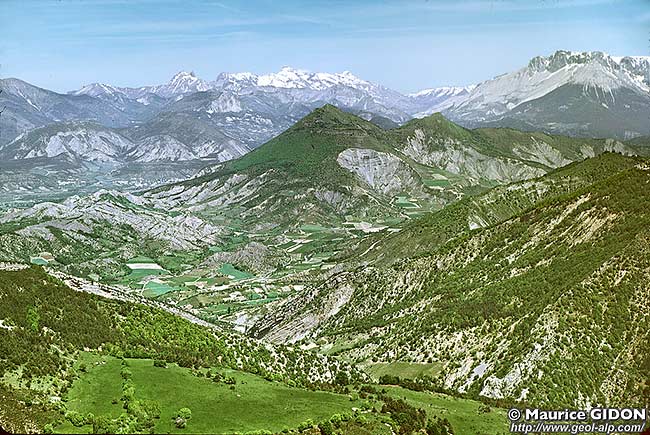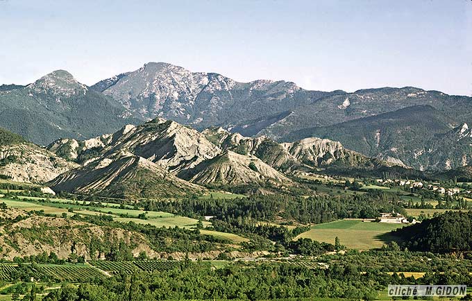 Ses affleurements de Terres Noires et d'Argovien déterminent un système de collines à relief extrêmement raviné (du type dit de "bad-lands"), où de multiples "roubines" séparent des échines en "dos d'éléphants" (voir un autre cliché très représentatif à la page Ventavon).