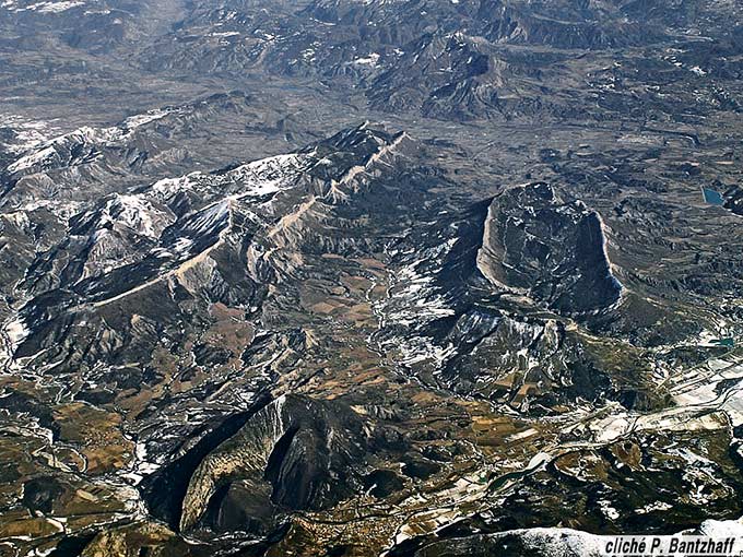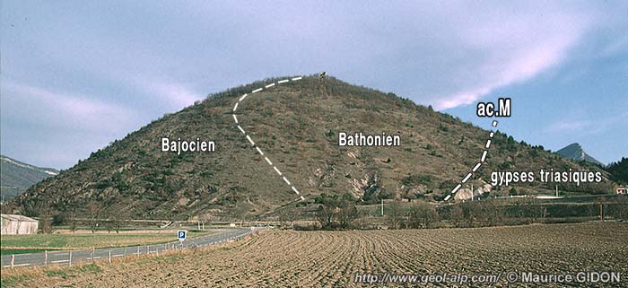 Mais en réalité il est difficile de dire avec précision comment les deux synclinaux qui se rencontrent là se raccordaient, de l'autre côté de la plaine alluviale du Buëch, aux plis de la rive ouest de cette rivière (appartenant aux Baronnies). En effet la rive gauche de cette vallée est parcourue par une autre ligne de cassures, grossièrement parallèle à la vallée, l'accident de Montrond. Ce dernier doit être, comme celui de Savournon, une déchirure qui intéresse toute l'épaisseur de la série sédimentaire car il est jalonné par un chapelet de remontées diapiriques* de gypses et cargneules triasiques.