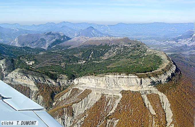 Cette montagne pourrait être considérée comme la plus méridionale de celles des chainons calcaires du Bochaine. Mais elle est séparée de sa voisine nord-orientale, celle d'Aujour (qui se rattache à ces derniers), par la très large combe anticlinale de Savournon. De plus cette dernière s'avère être une importante frontière structurale car c'est là que passe la ligne de dislocation qui, du col de Cabre à Monêtier-Allemont, limite le domaine structural du Dévoluy de celui des Baronnies-Diois (voir à ce sujet la page "cadre tectonique du Dévoluy"). |
