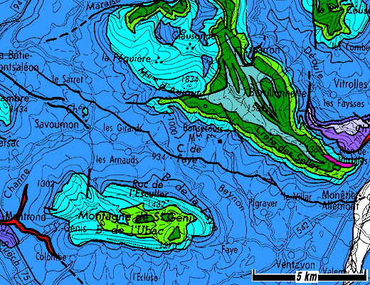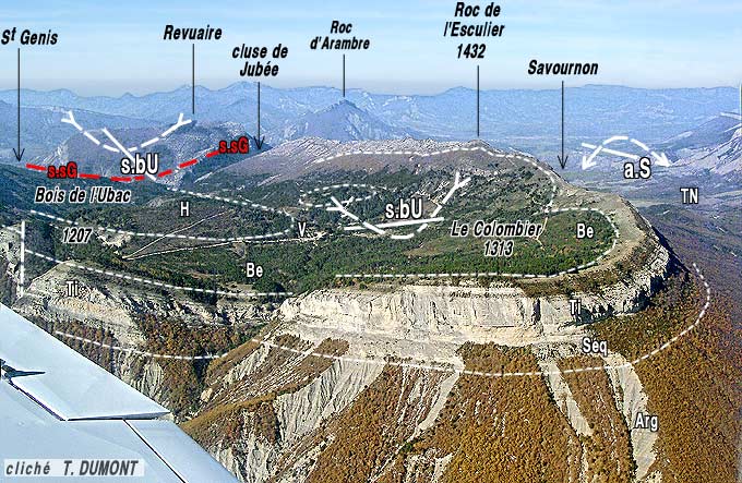 À première vue il semble bien que le synclinal du Bois de l'Ubac devrait prolonger la branche nord du synclinal de Rosans (voir la page"L'Épine") tandis que le synclinal de Saint-Genis représenterait la terminaison orientale du synclinal de Saint-Cyrice (voir la page "Orpierre"), que l'on perd dans les Terres Noires de la combe de Savournon.