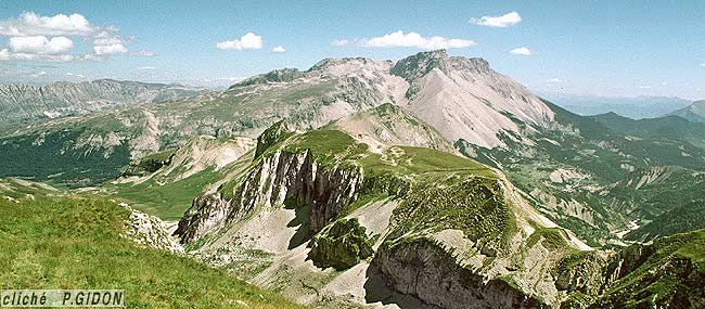 La bande marneuse du coeur du pli s'élève alors sur le versant sud du vallon, jusqu'à déterminer le collet 1942 qui sépare la Tête de Merlant de celle du Jas des Arres. Elle ne se prolonge guère au delà, dans le versant nord du col de Darne, car elle y est tranchée par la faille du Chauvet (voir la page "col du Festre"). |