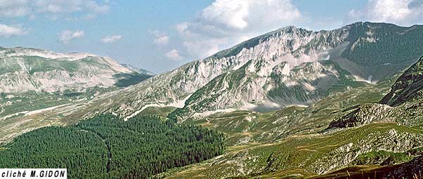 Le trait majeur de ce versant de la montagne est qu'il a subi, du fait de son orientation une érosion glaciaire par des petits appareils locaux. Ces derniers y ont ouvert des cirques qui ont partiellement percé la carapace sénonienne, mais sans jamais en atteindre le substratum (voir aussi à ce sujet la page "paysages glaciaires du Dévoluy").