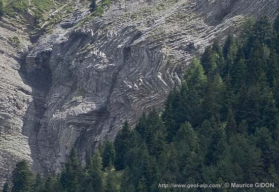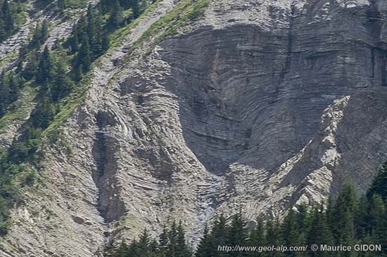 Une observation attentive des abrupts septentrionaux de l'Aiguille, dans les ravines affluentes du torrent de Chalanne montre que l'on y observe en réalité deux générations de plis :