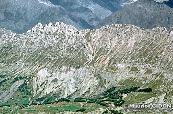L'examen plus détaillé des excellents affleurements de ce secteur montre en outre que le chevauchement principal s'accompagne de failles inverses satellites, visibles sur les deux versants de la crête.
