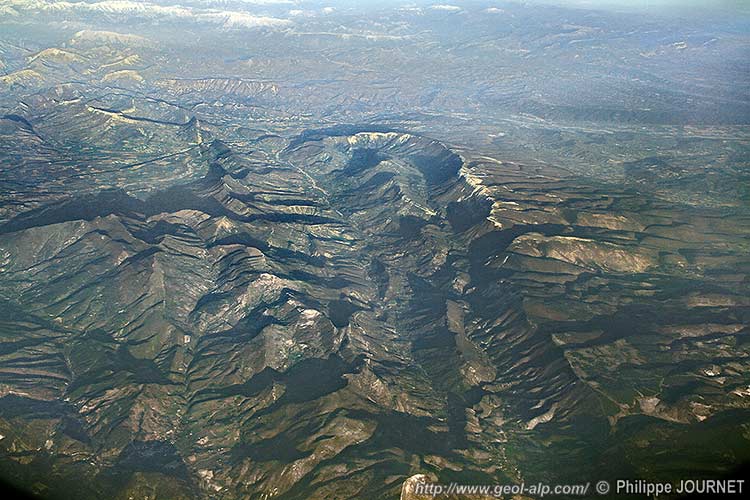 La partie orientale des Baronnies méridionales, vue de l'ouest depuis un avion de ligne (cliché original obligeamment communiqué par M. Ph. Journet)