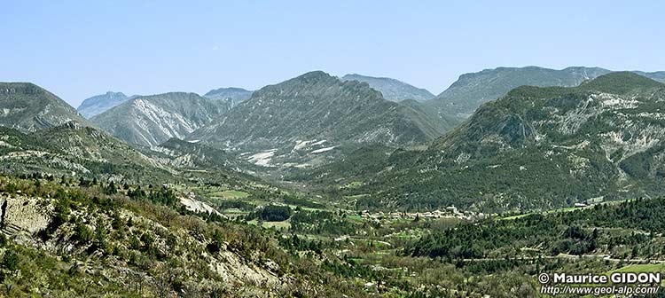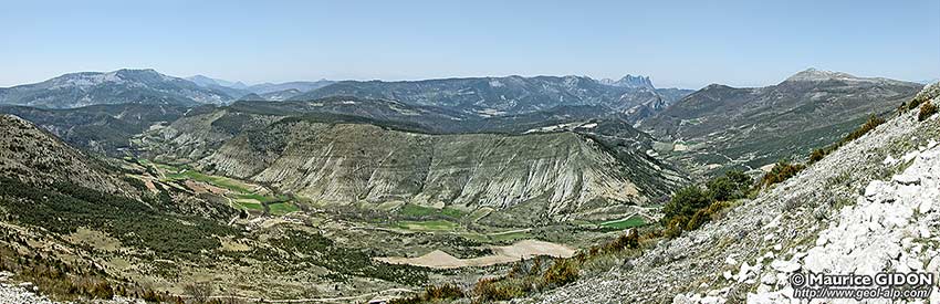 ![]() La dépression de la Motte-Chalancon vue du nord-ouest, depuis le village de Chalancon. |