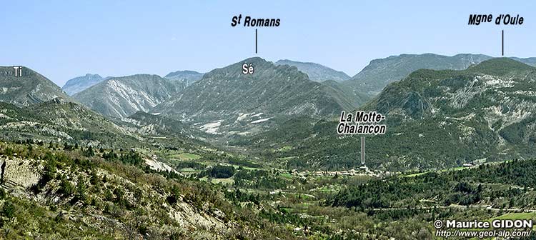 Au nord-ouest de La Motte-Chalancon cette dépression de Terres Noires est dominée par une corniche tithonique très régulière au pied de laquelle est bâti le village de Chalancon. Elle représente le rebord méridional, doucement incurvé, du synclinal de Saint-Nazaire-le-Désert, dont l'axe se relève doucement vers le SE, comme pour passer au dessus de La Motte-Chalancon.