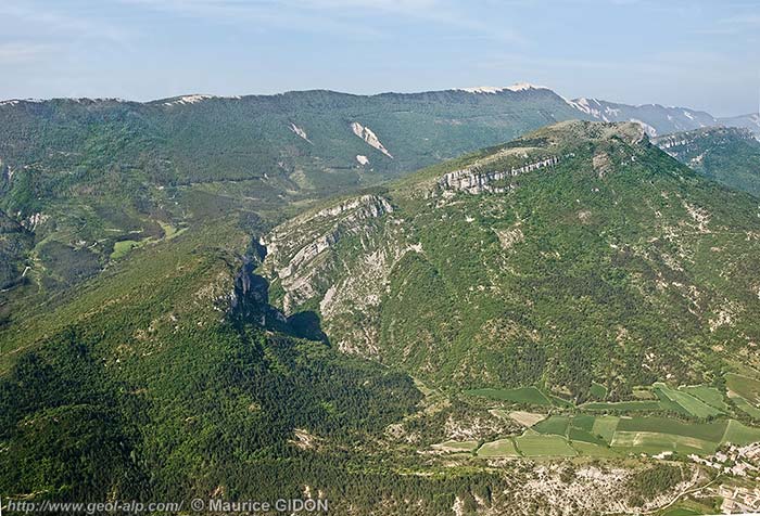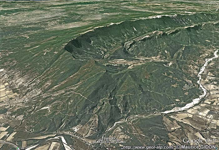 On assiste là à la terminaison par amortissement* du mouvement chevauchant par lequel les chaînons des Baronnies méridionales ont été entraînés sous ceux de la Provence septentrionale (voir la page "Baronnies").