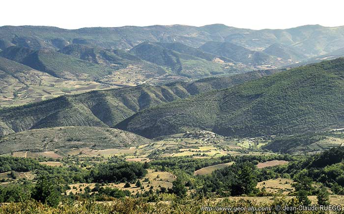 À l'ouest de la montagne de Chamouse l'intérieur du val des sources de l'Ouvèze montre sur ses deux versants de beaux reliefs de cuestas emboitées, dont les plus marquantes ont pour crête les calcaires relativement compacts de la barre du Barrémo-bédoulien et dont les revers, bien débarassés de leur couverture de marnes bleues, forment de belles dalles structurales.