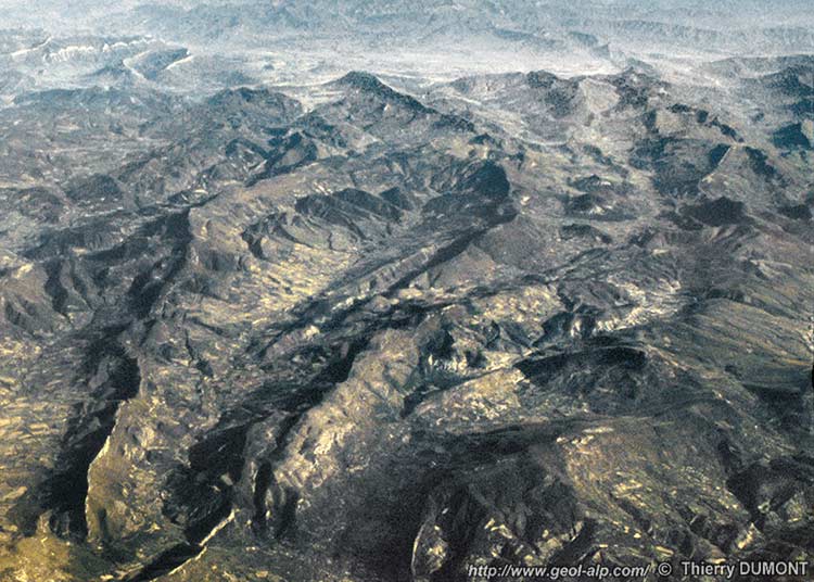Du côté nord cette ligne de cuestas est par contre incisée par plusieurs torrents parallèles, descendant selon la ligne de plus grande pente des couches, ce qui a abouti à lui donner un tracé en chevrons tout-à-fait remarquable.