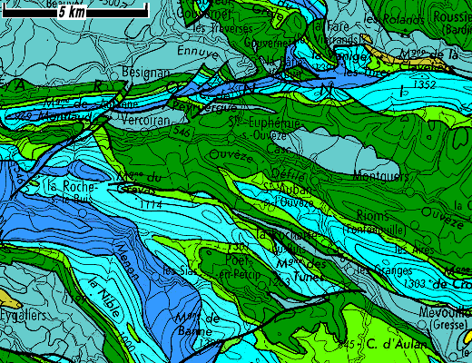 cartes géologiques au 1/50.000° à consulter : feuille Séderon