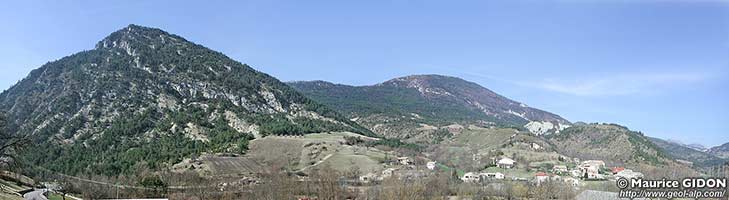 La rive droite du vallon d'Establet vue du SE depuis la D.61 au carrefour de la D.106