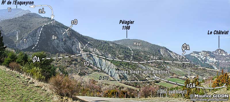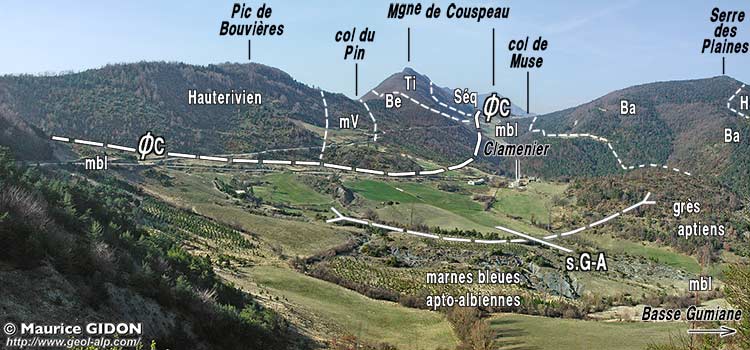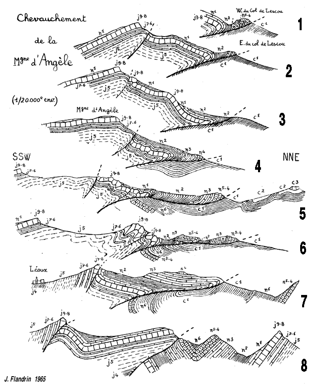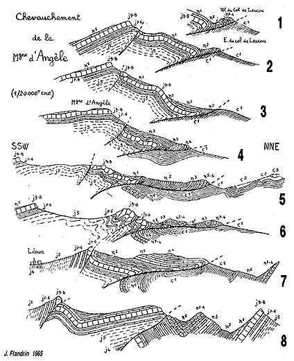 Coupes sériées transversales au chaînon de la montagne d'Angèle par J.Flandrin, (1965) (présentation originelle) |