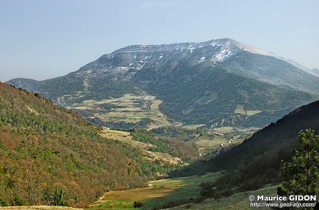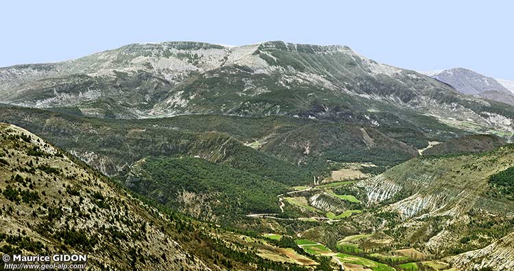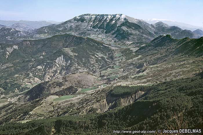 ![]() L'extrémité occidentale de la montagne d'Angèle vue du nord, d'avion (cliché original obligeamment communiqué par M. J.Debelmas) |