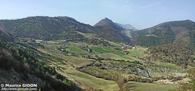 Les villages de la commune de Gumiane se situent dans une large combe monoclinale, ouverte dans les marnes bleues apto-albiennes, au flanc sud-ouest de l'anticlinal de Chalancon. Cette large zone à relief de modestes collines coupées de ravines héberge même, plus au sud-est, une petite butte témoin de Cénomanien-Turonien constituant les rochers du Châtelat. Elle se poursuit par Arnayon en direction de Cornillon, au pied des pentes de la Montagne d'Angèle, qui la domine tout du long, du côté sud-ouest.