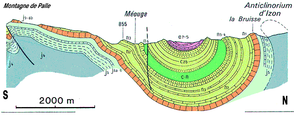 là, au coeur du synclinal, un anticlinal secondaire qui