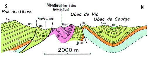 Courge et a.V = anticlinal de l'Ubac de Vic (cf. coupe
