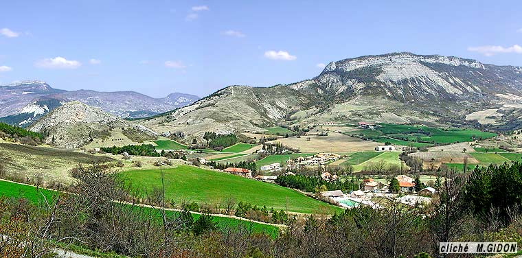 La localité de Séderon se situe au cœur d'une dépression dont le bedrock* est constitué de Terres Noires. C'est une typique combe anticlinale, qui est fermée à ses extrémités ouest et est par la corniche Tithonique de la voûte de l'anticlinal de Séderon. Cette dernière plonge vers l'est et vers l'ouest de part et d'autre du cours de la Méouge : l'axe du pli culminait donc à peu près à l'aplomb de Séderon, avant que l'érosion n'y ait crevé le Tithonique de sa voûte.
