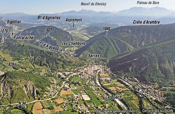 cartes géologiques au 1/50.000° à consulter : feuilles Serres et Luc-en-Diois