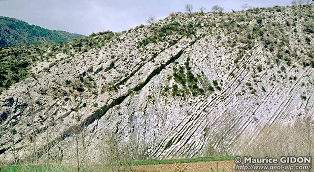 Ce relèvement axial et cette torsion corrélative affectent de la même manière, au sud de Serres, l'axe du synclinal de Rosans (voir la page "L'Épine") : |