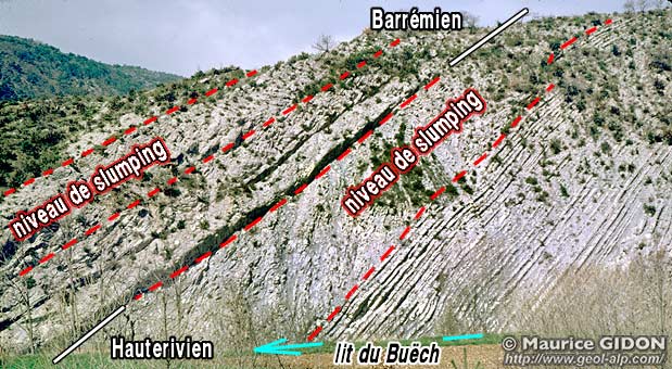 La partie amont de la cluse du Buëch donne une bonne coupe naturelle du Barrémien et de l'Hauterivien du flanc nord du synclinal de Montmorin : on y voit notamment combien les niveaux du Barrémien inférieur ont été affectés, lors de leur dépôt, par des phénomènes de glissements sous-marins ("slumping*).