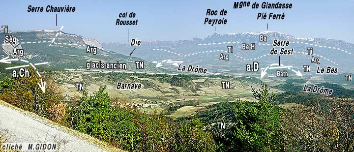 quaternaire et se perd franchement vers le nord aux abords orientaux de Die. C'est pourtant un accident majeur, qui est bien observable plus au sud-ouest, aux abords de Jonchères.