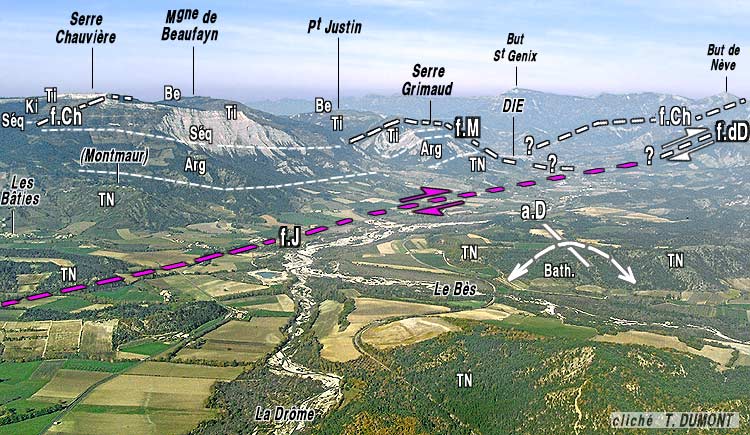 N-S qui traverse et rompt l'anticlinal de Die en le décalant dans le sens dextre. Ce faisceau