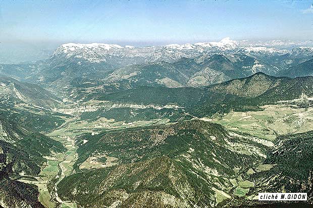 A l'ouest de Boulc la combe des marnes bleues n'existe plus, car les conglomérats des Gâts reposent là directement sur le Barrémo-Bédoulien. Cette disposition découle de ce que la surface basale de ces conglomérats est discordante* par rapport à la stratification des couches sous-jacentes. Elle apparaît au nord-ouest d'une ligne qui coïncide à peu près avec le tracé des gorges des Gâts en aval de Glandage et indique que l'on est là dans un domaine qui a été basculé vers le sud-est à l'époque de formation des plis anté-Sénoniens du Dévoluy.